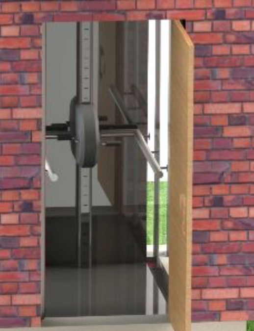 De renders hiernaast laten zien hoe het product werkt. Door een handgedreven fiets die is geplaatst in de lift, verplaatst de lift zich van de ene naar de andere verdieping.