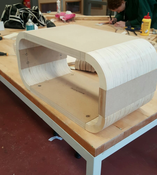 Mijn eerste project bij de HAN was om een nachtkastje te ontwerpen en te realiseren uit multiplex. Samen met vijf andere studenten heb ik twee maanden aan dit project gewerkt.